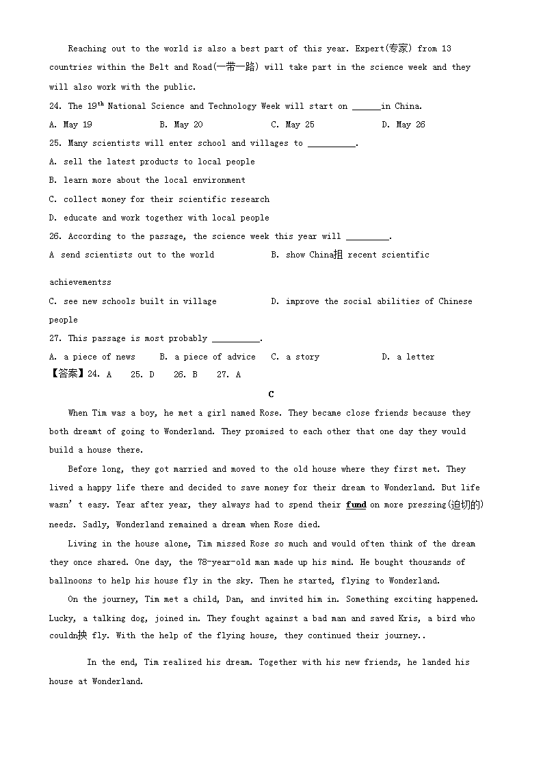 【文档名称】 2019年重庆涪陵中考英语真题及答案B卷(Word版).doc
