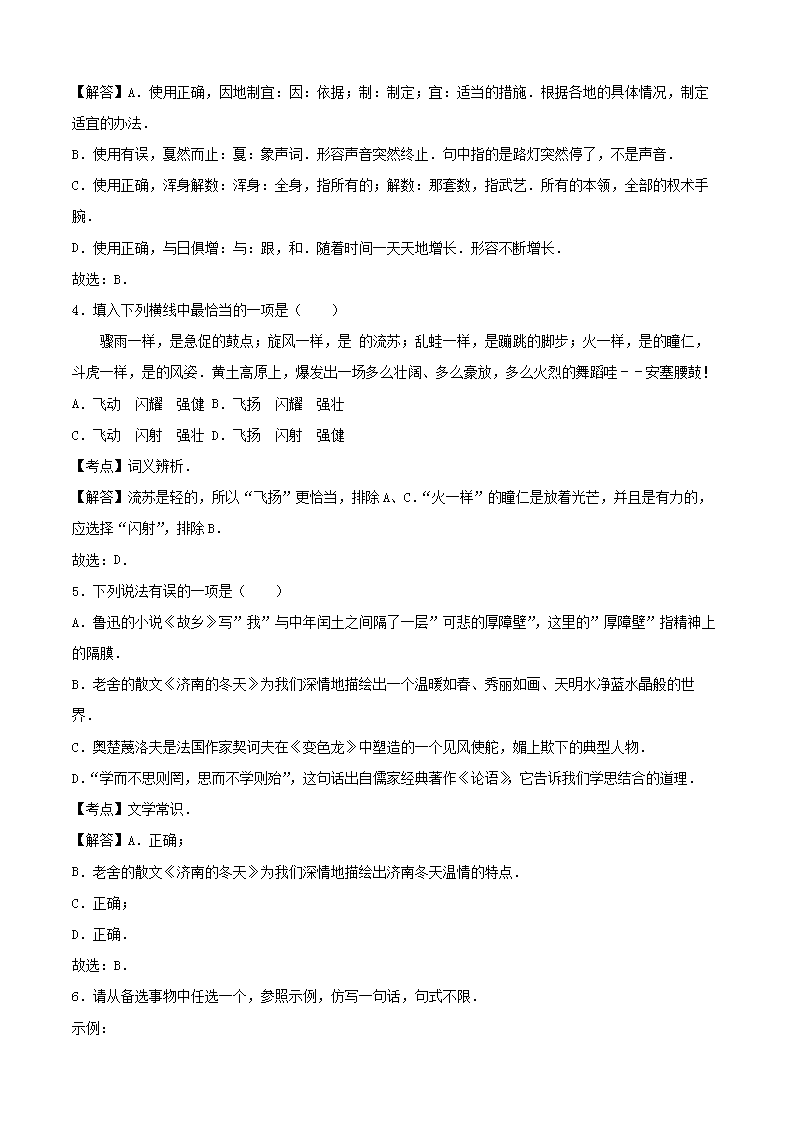 【文档名称】 2016年重庆合川中考语文真题及答案B卷(Word版).doc