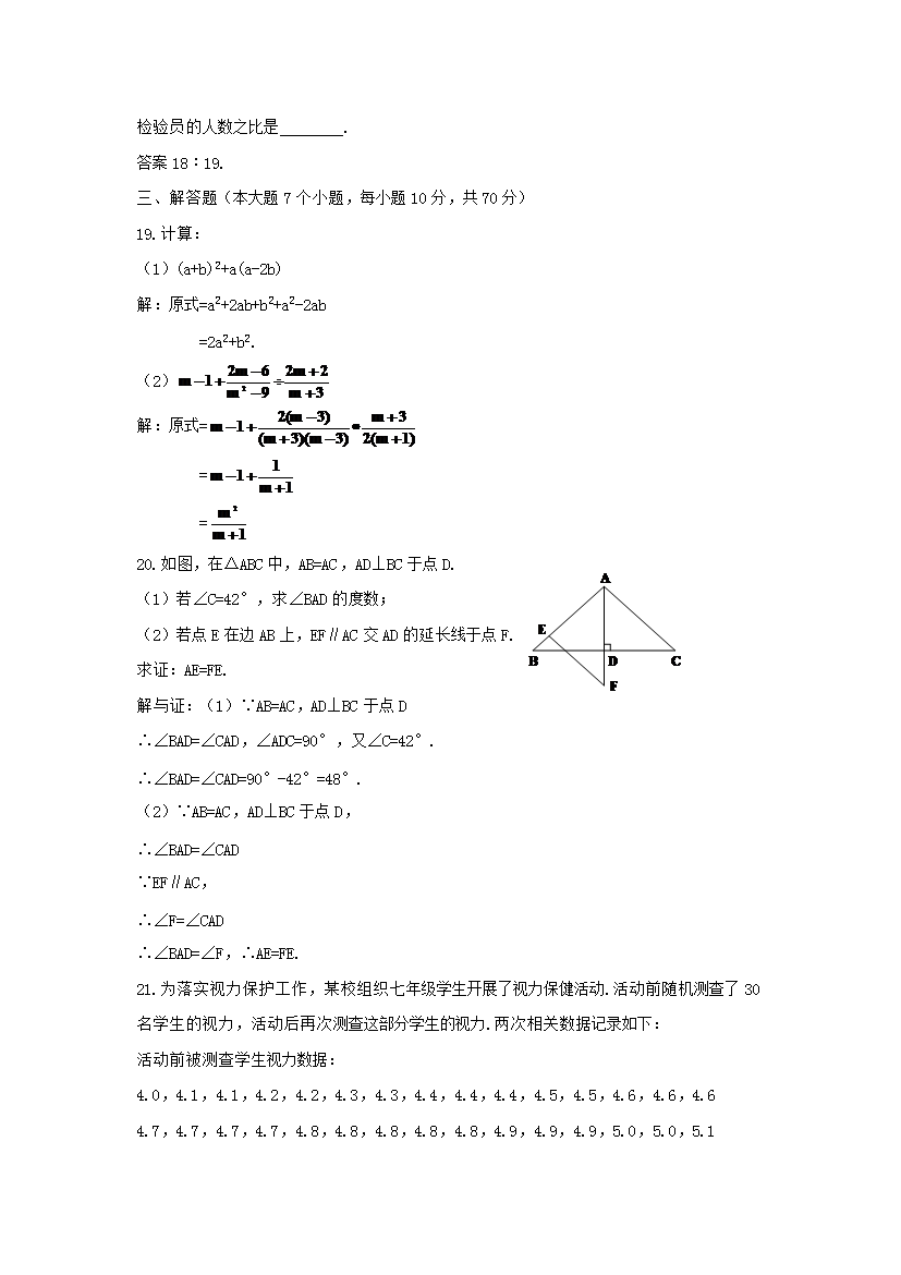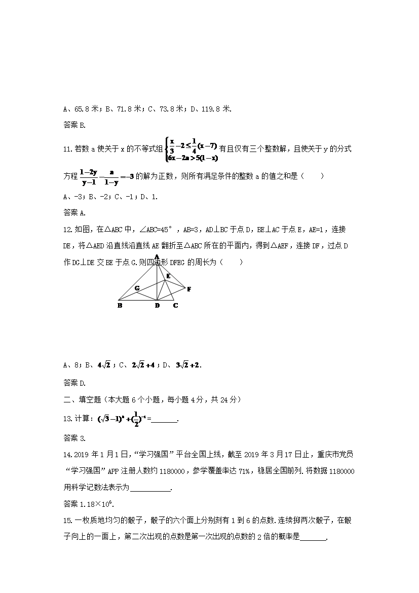 【文档名称】 2019年重庆长寿中考数学真题及答案B卷(Word版).doc