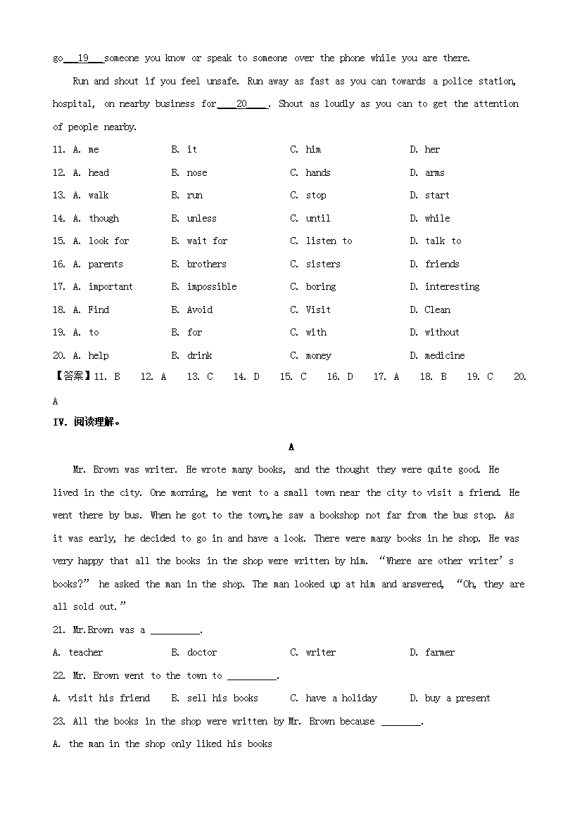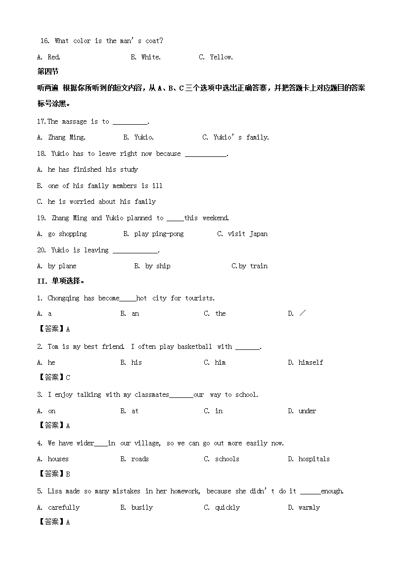 【文档名称】 2019年重庆长寿中考英语真题及答案B卷(Word版).doc