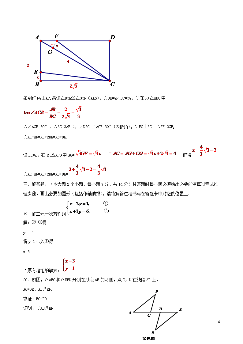 【文档名称】 2015年重庆合川中考数学真题及答案B卷(Word版).doc