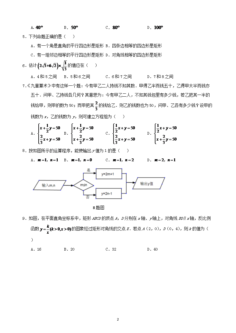 【文档名称】 2019年重庆双桥中考数学真题及答案A卷(Word版).doc