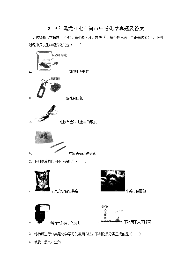 【文档名称】 2019年黑龙江七台河市中考化学真题及答案(Word版).doc
