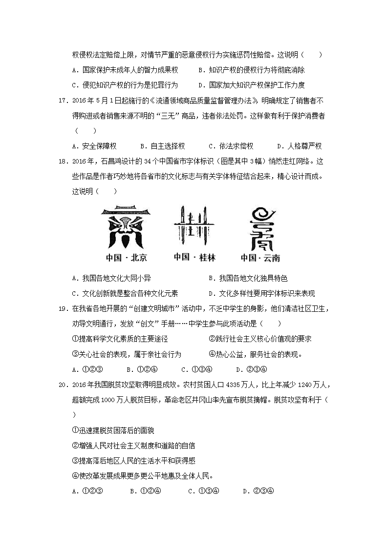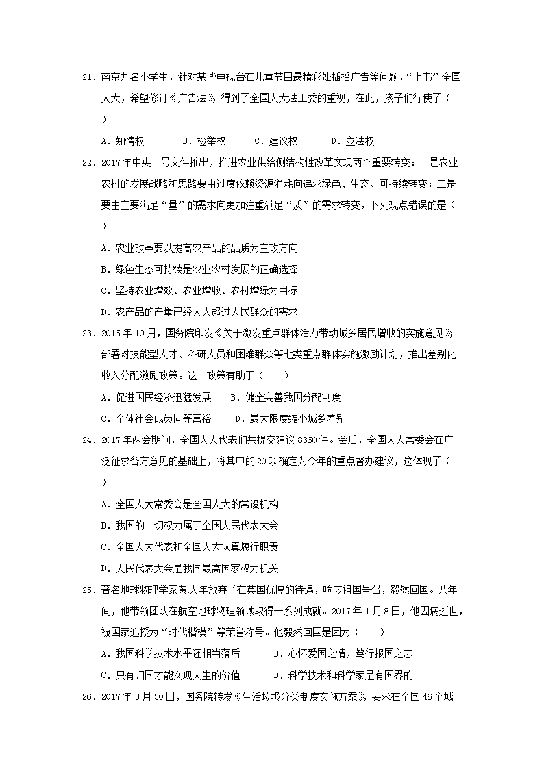 【文档名称】 2017年广东省珠海市中考政治真题及答案(Word版).doc