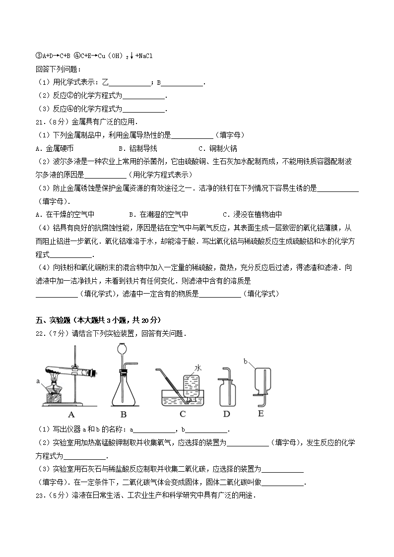 【文档名称】 2016天津宝坻中考化学真题及答案(Word版).doc