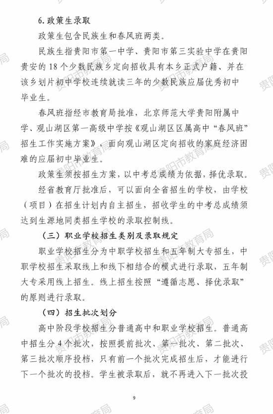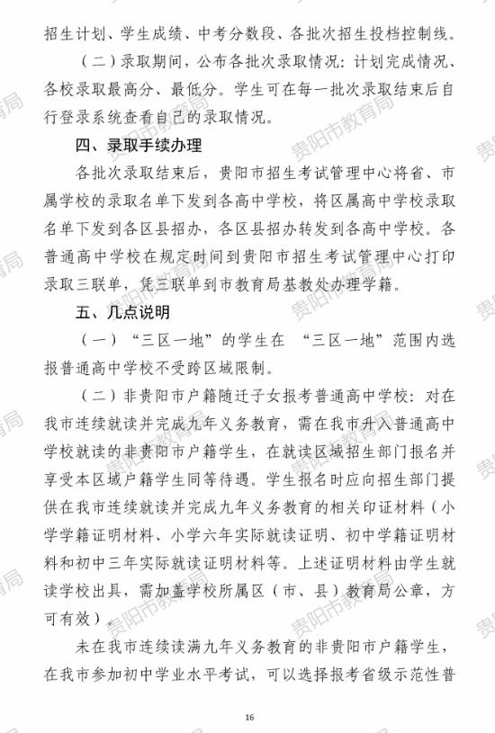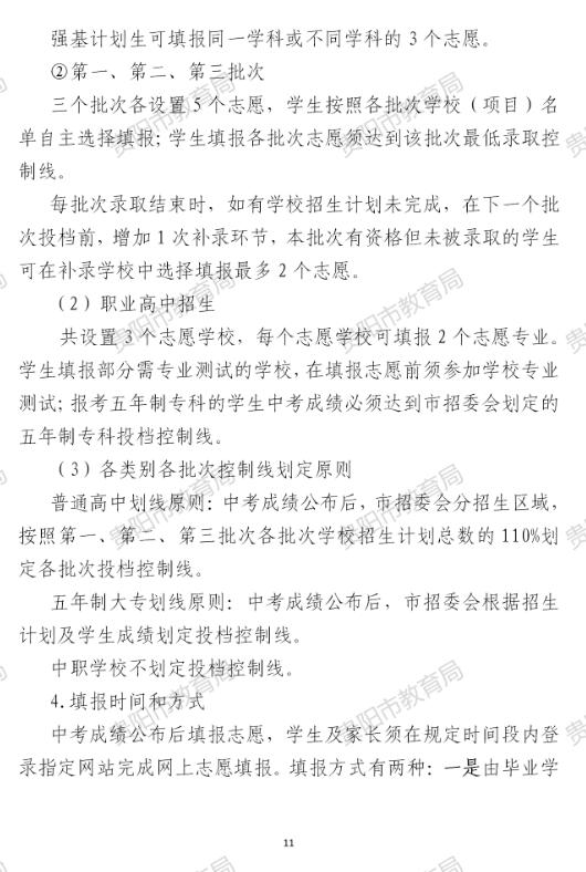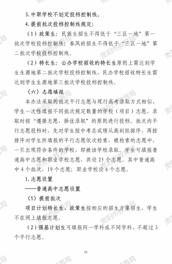2025年贵州贵阳贵安高中阶段学校志愿填报最低控制线划定