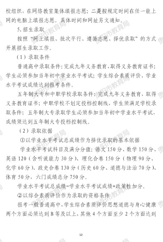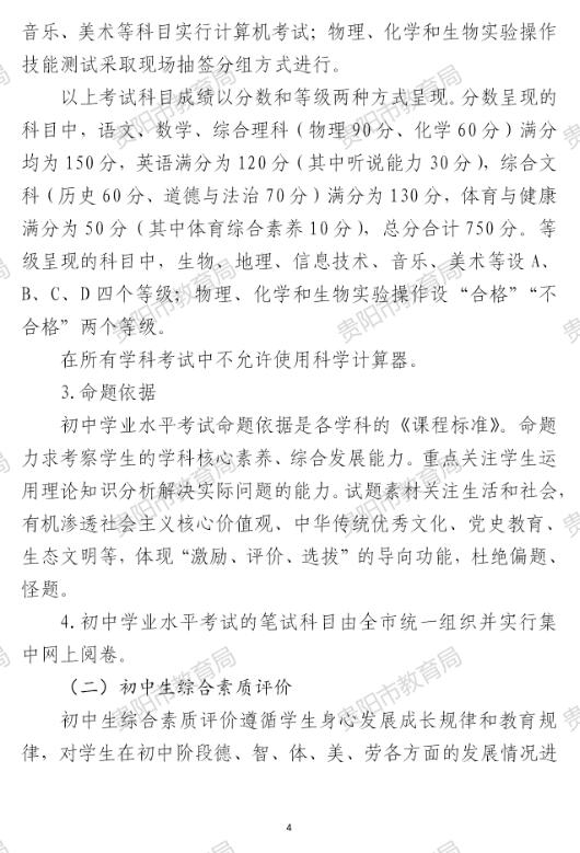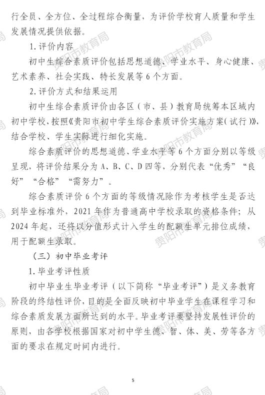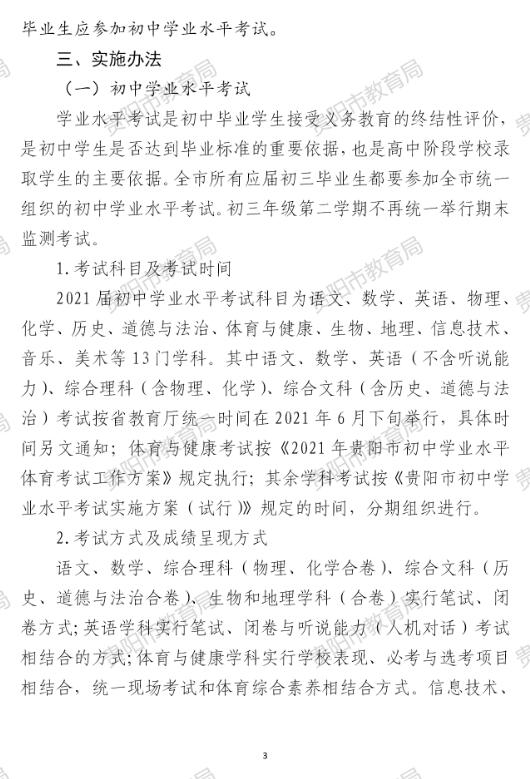 贵阳市教育局:2021年贵州贵阳初中学业水平考试与高中招生工