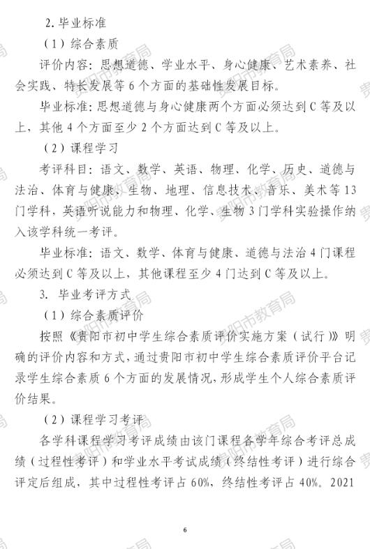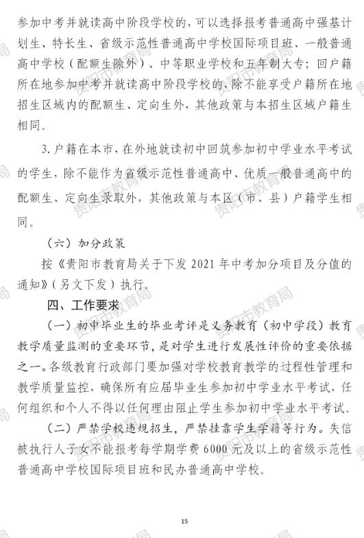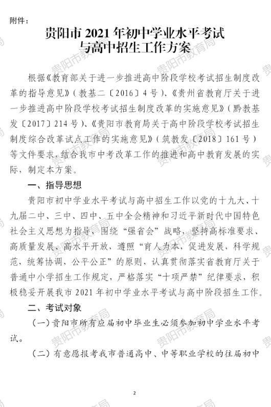 贵阳市教育局:2021年贵州贵阳初中学业水平考试与高中招生工作方案公布