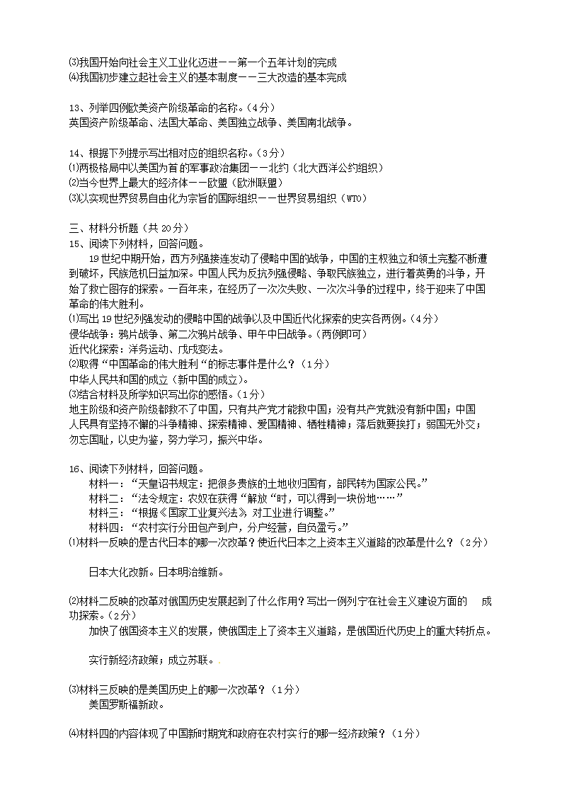 【文档名称】 2015年吉林通化中考历史真题及答案(Word版).doc