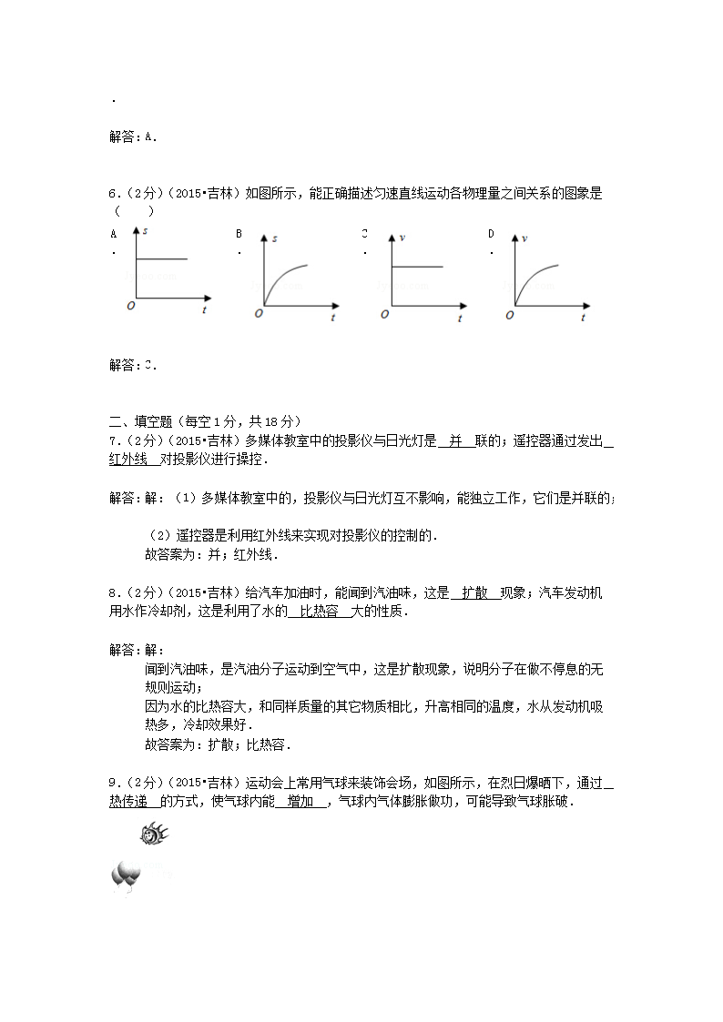 【文档名称】 2015年吉林通化中考物理真题及答案(Word版).doc