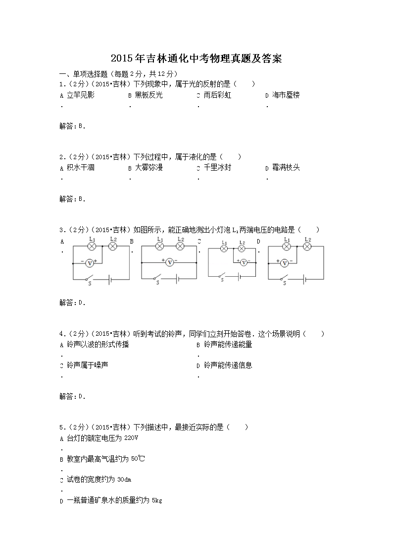 【文档预览】 无忧考网整理发布2015年吉林通化中考物理真题及答案(Word版),前五页预览如下: