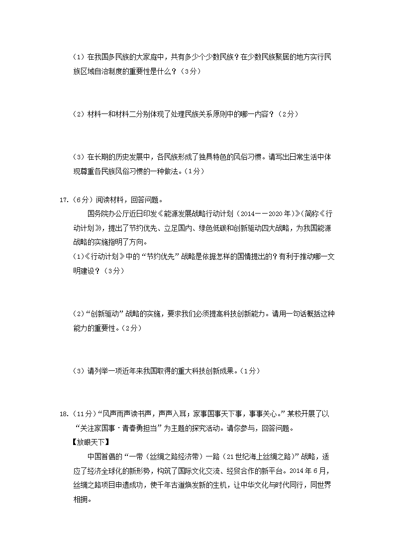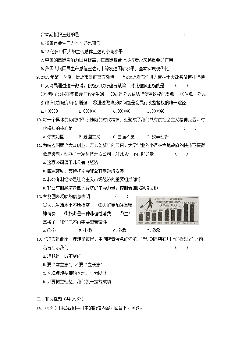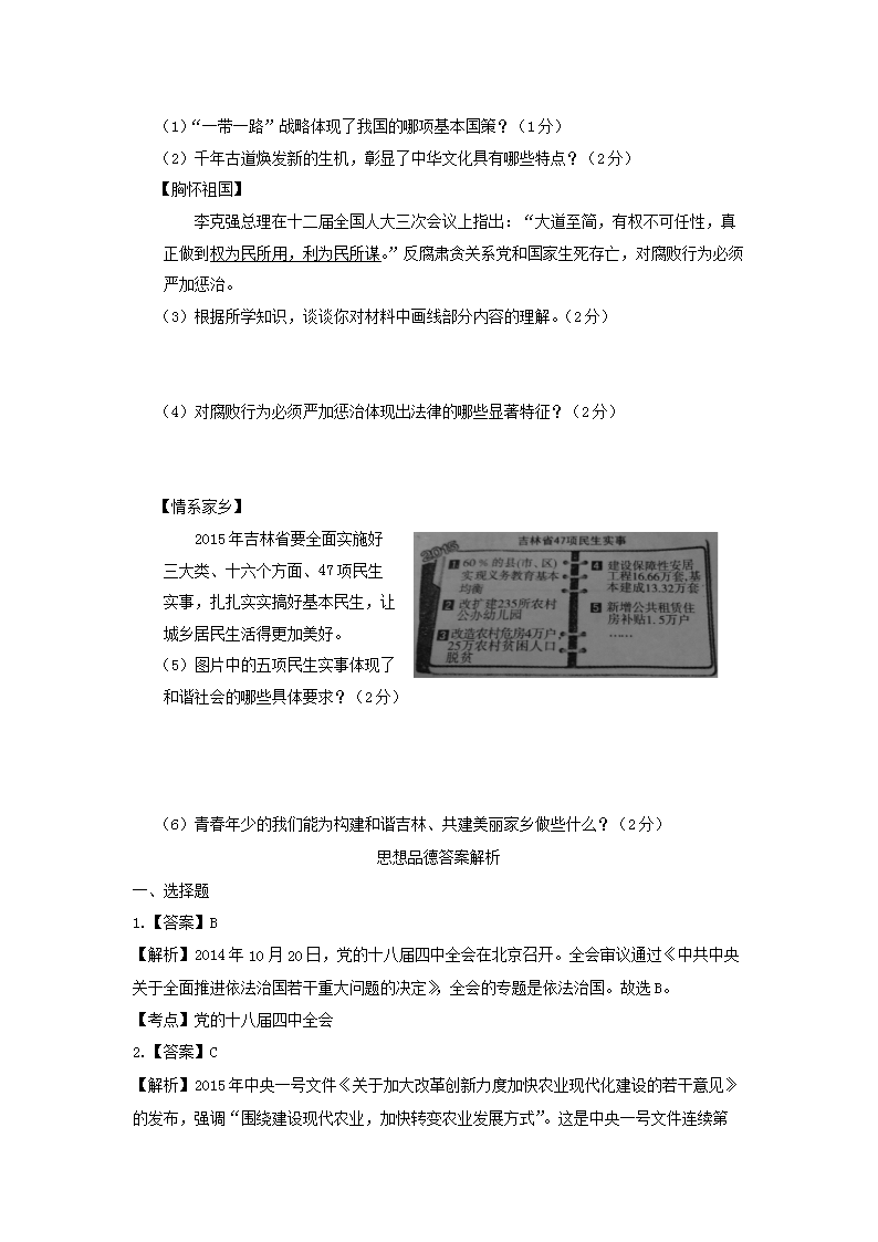 【文档名称】 2015年吉林通化中考政治真题及答案(Word版).doc