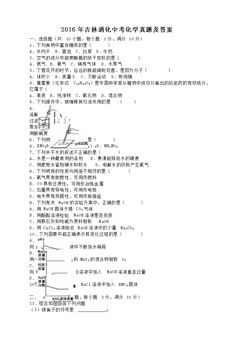 【文档名称】 2016年吉林通化中考化学真题及答案(Word版).doc