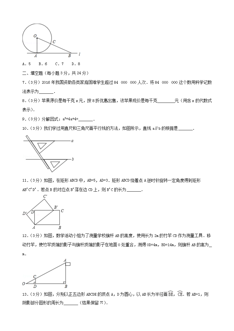 【文档名称】 2017年吉林通化中考数学真题及答案(Word版).doc
