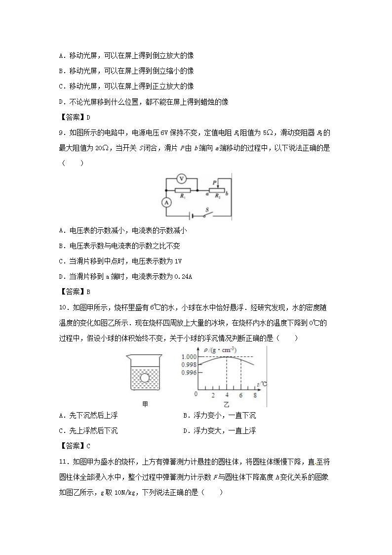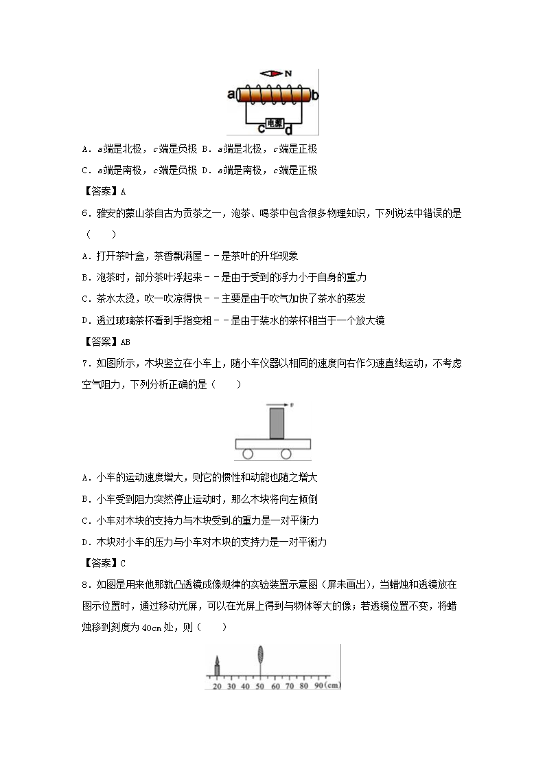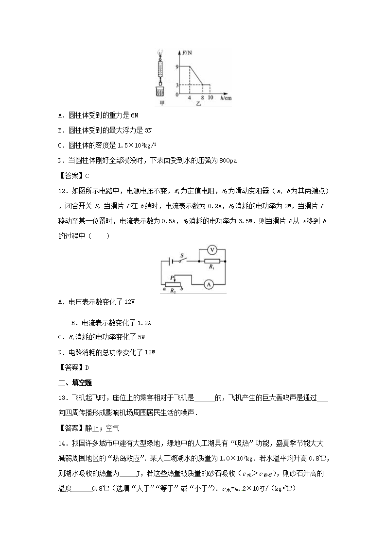 【文档名称】 2016年四川省雅安市中考物理真题及答案(Word版).doc