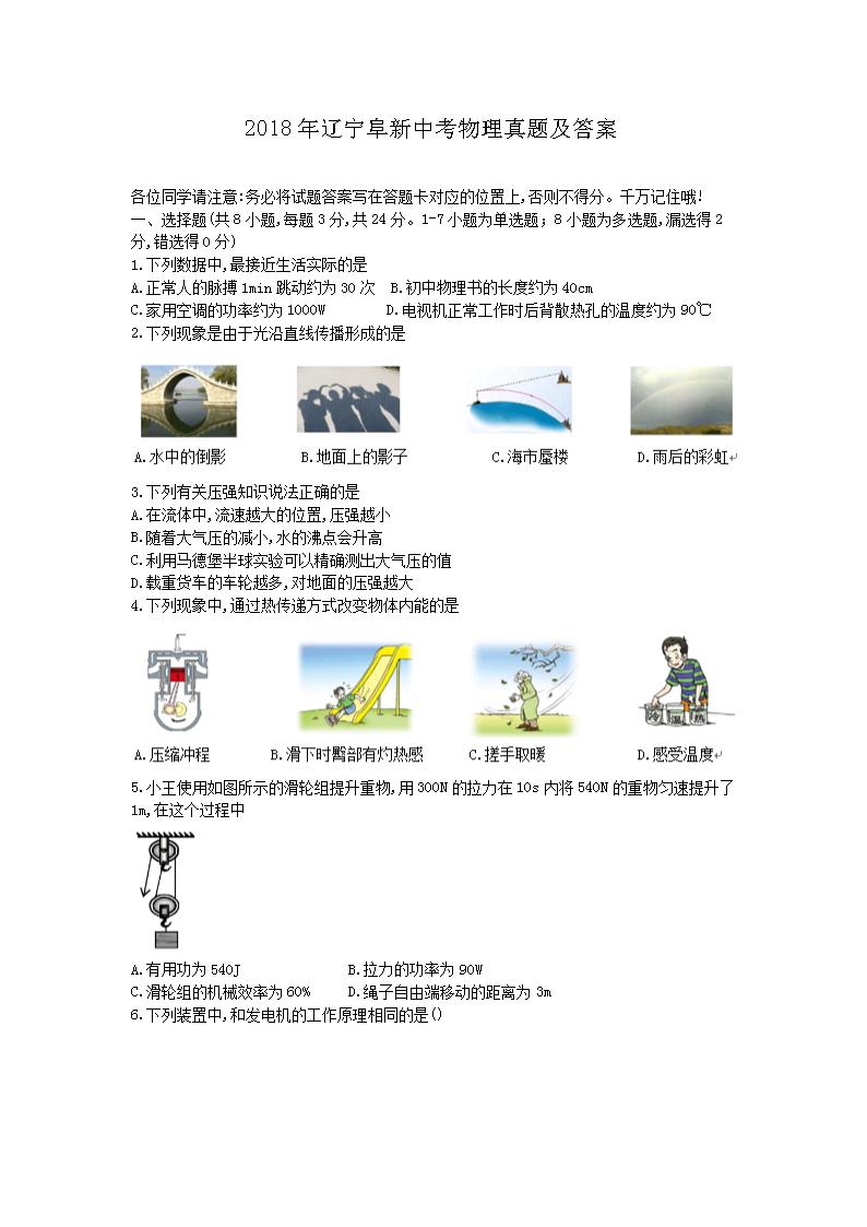 【文档名称】 2018年辽宁阜新中考物理真题及答案(Word版).doc