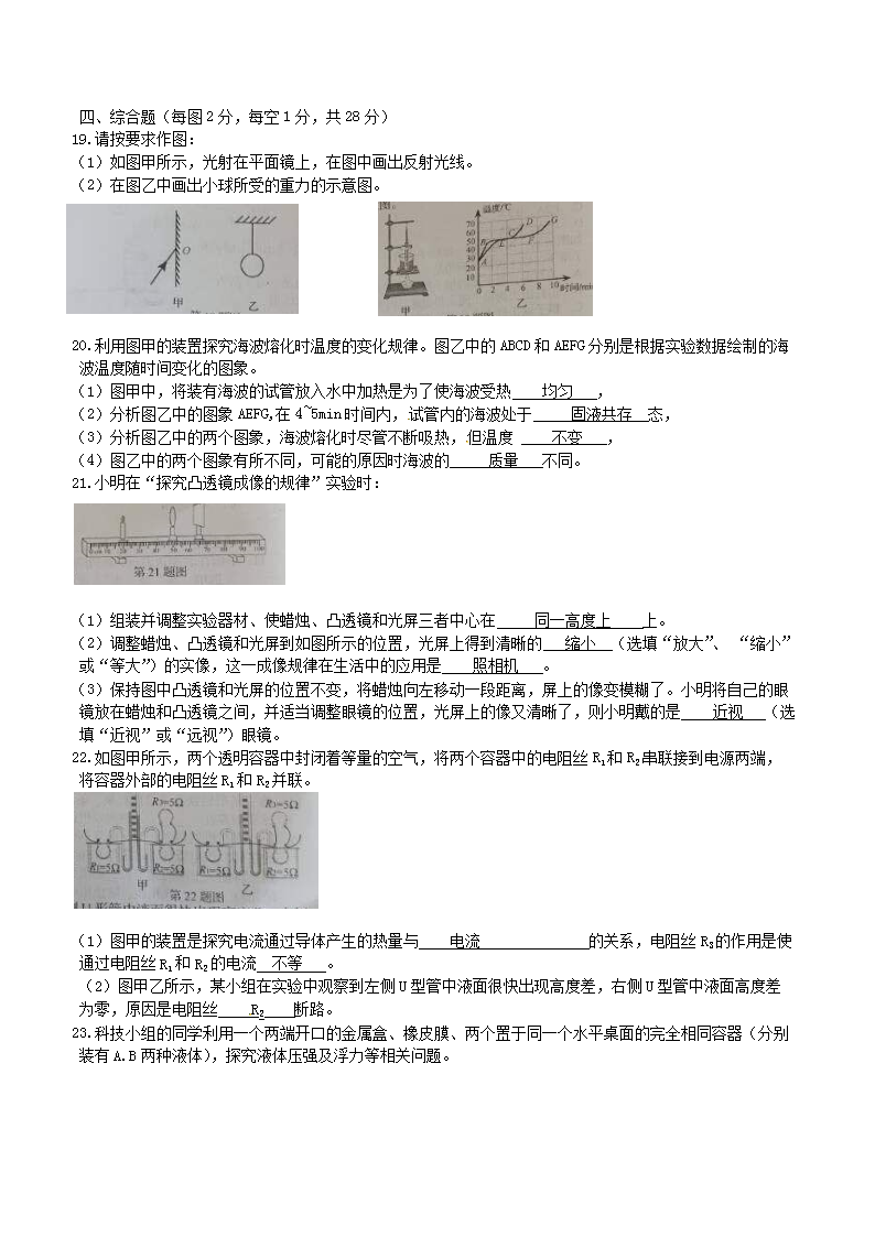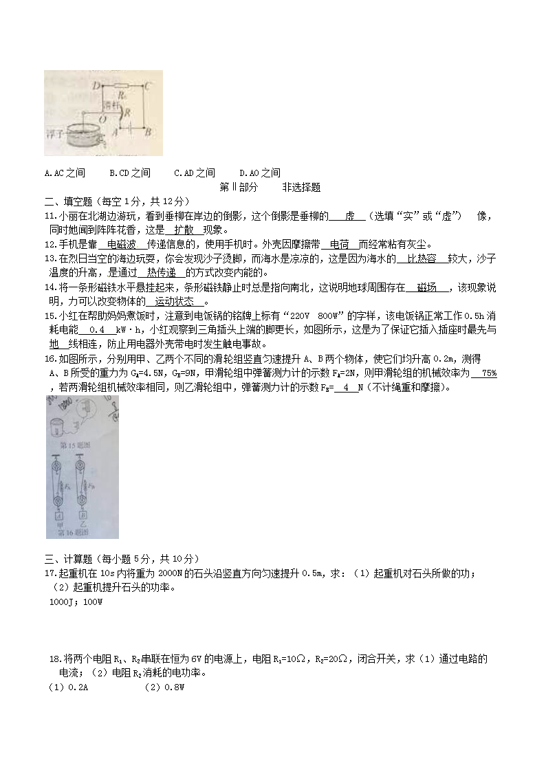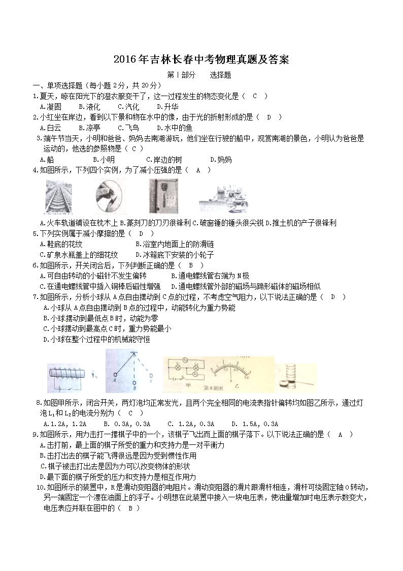 【文档名称】 2016年吉林长春中考物理真题及答案(Word版).doc