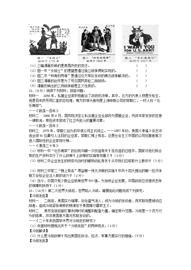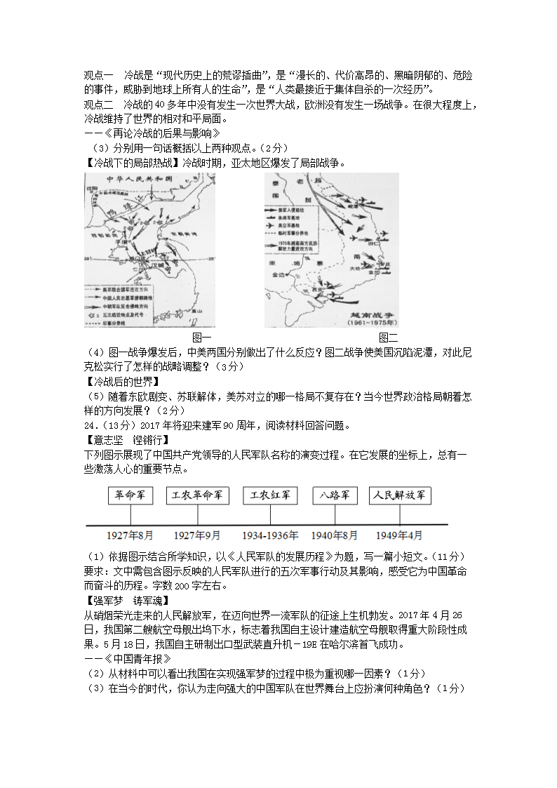 【文档名称】 2017年吉林长春中考历史真题及答案(Word版).doc