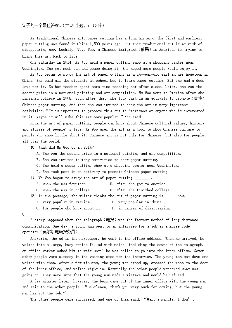 【文档名称】 2015年陕西省渭南中考英语真题及答案(Word版).doc
