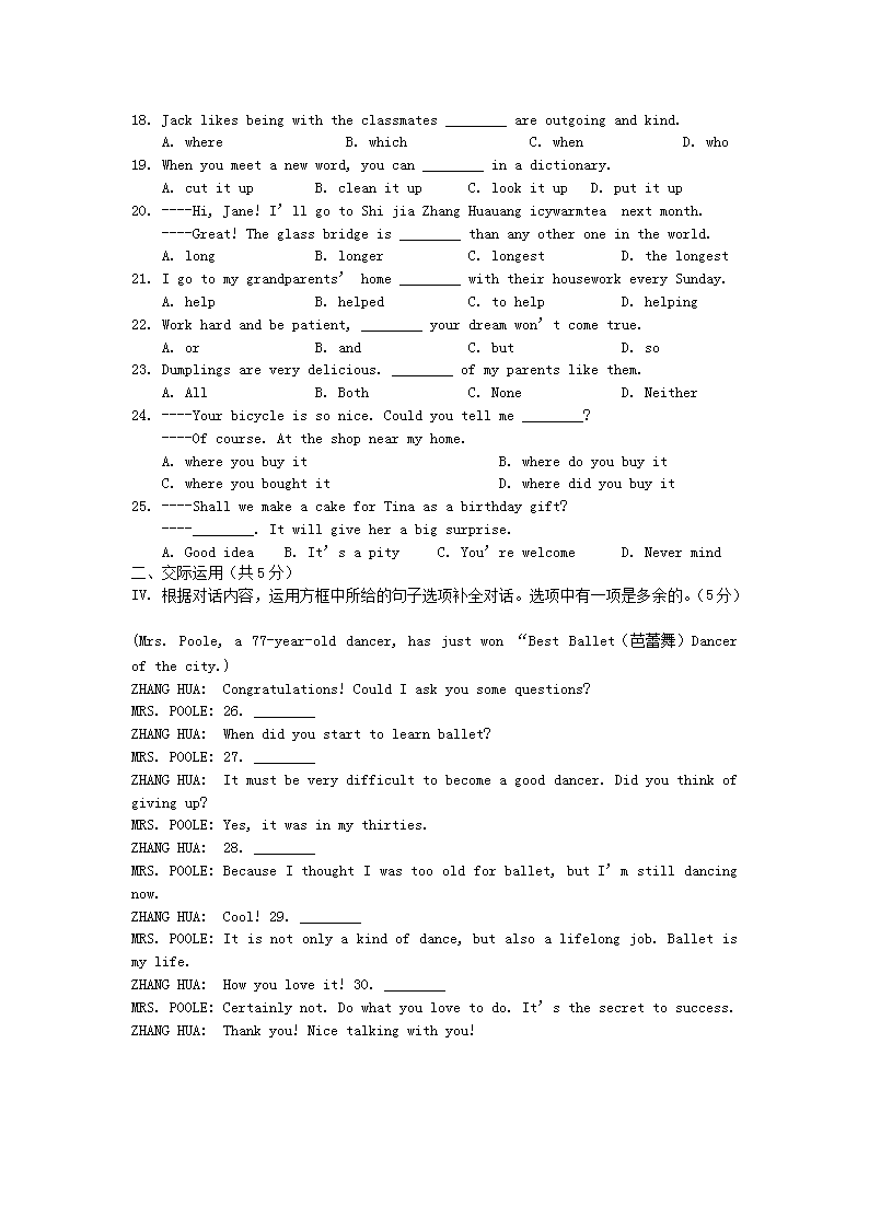 【文档预览】 无忧考网整理发布2018年吉林长春中考英语真题及答案(Word版),前五页预览如下: