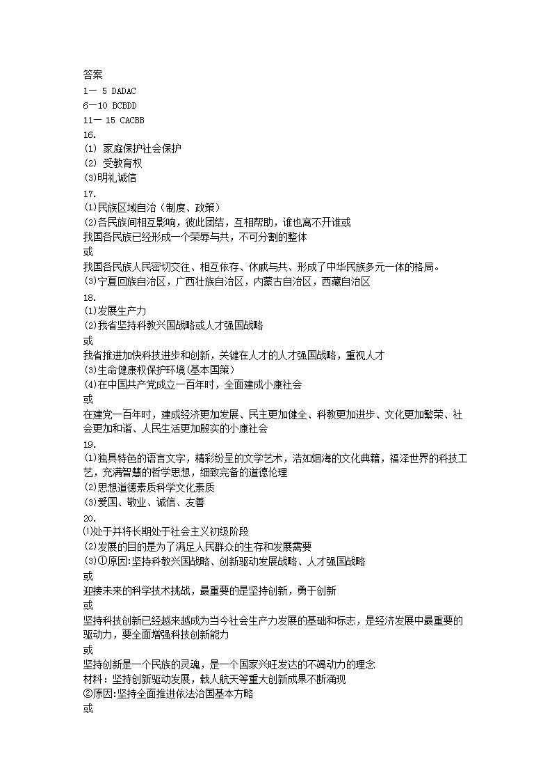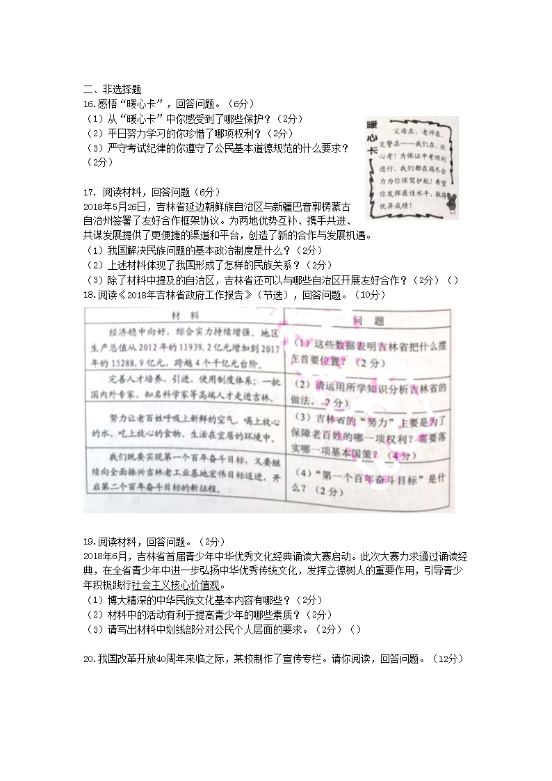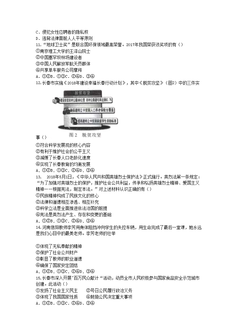 【文档名称】 2018年吉林长春中考政治真题及答案(Word版).doc