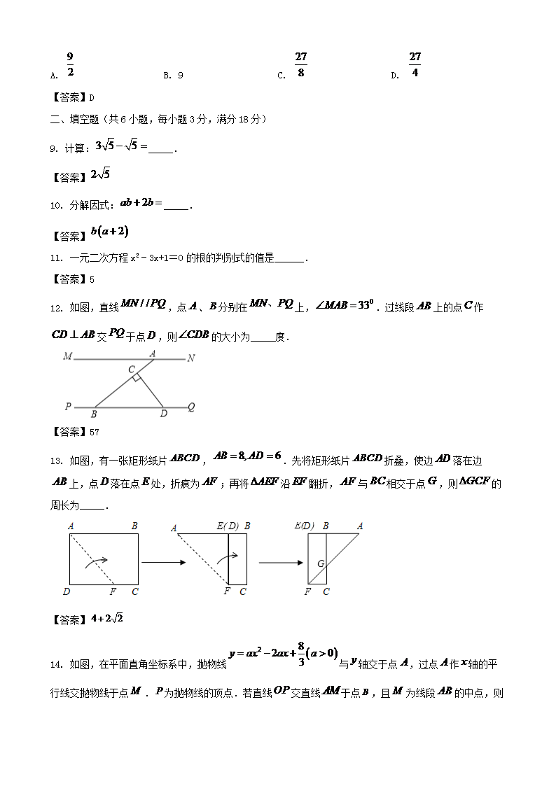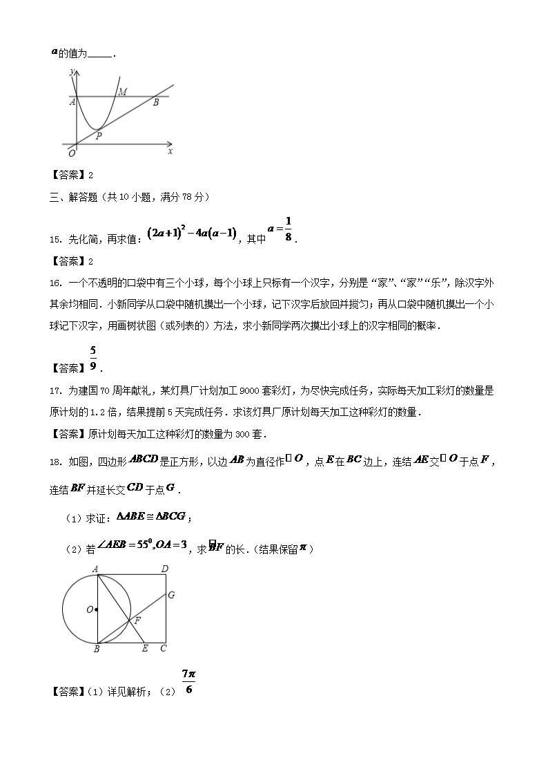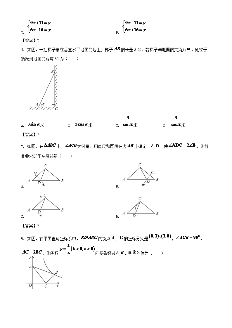 【文档名称】 2019年吉林长春中考数学真题及答案(Word版).doc