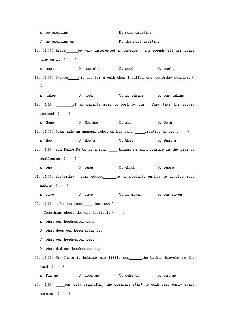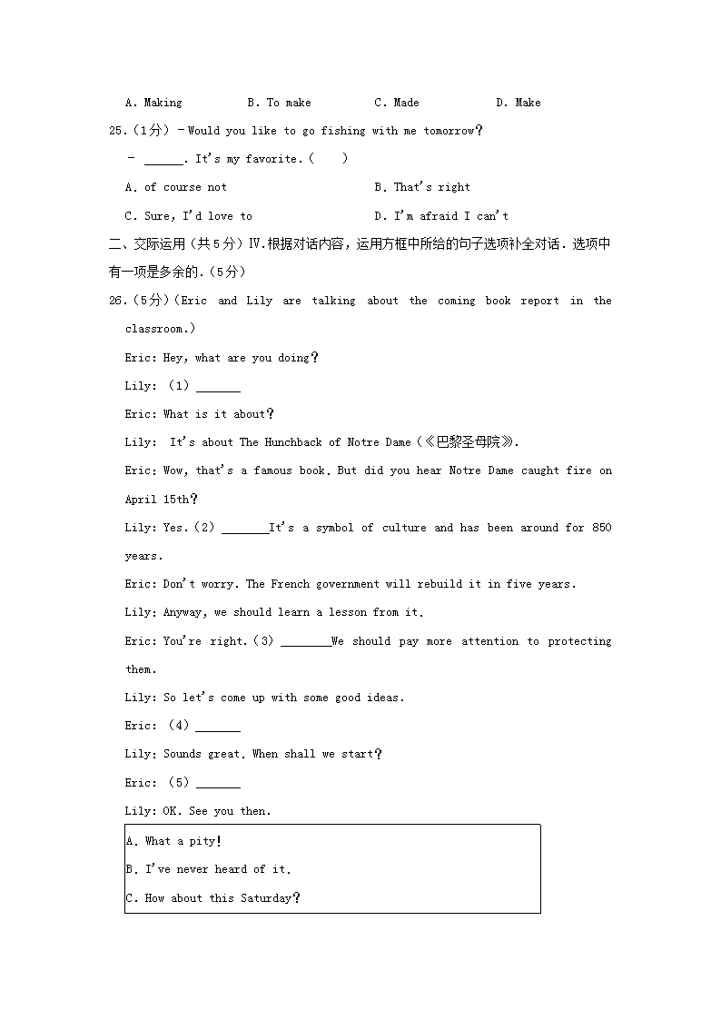 【文档名称】 2019年吉林长春中考英语真题及答案(Word版).doc
