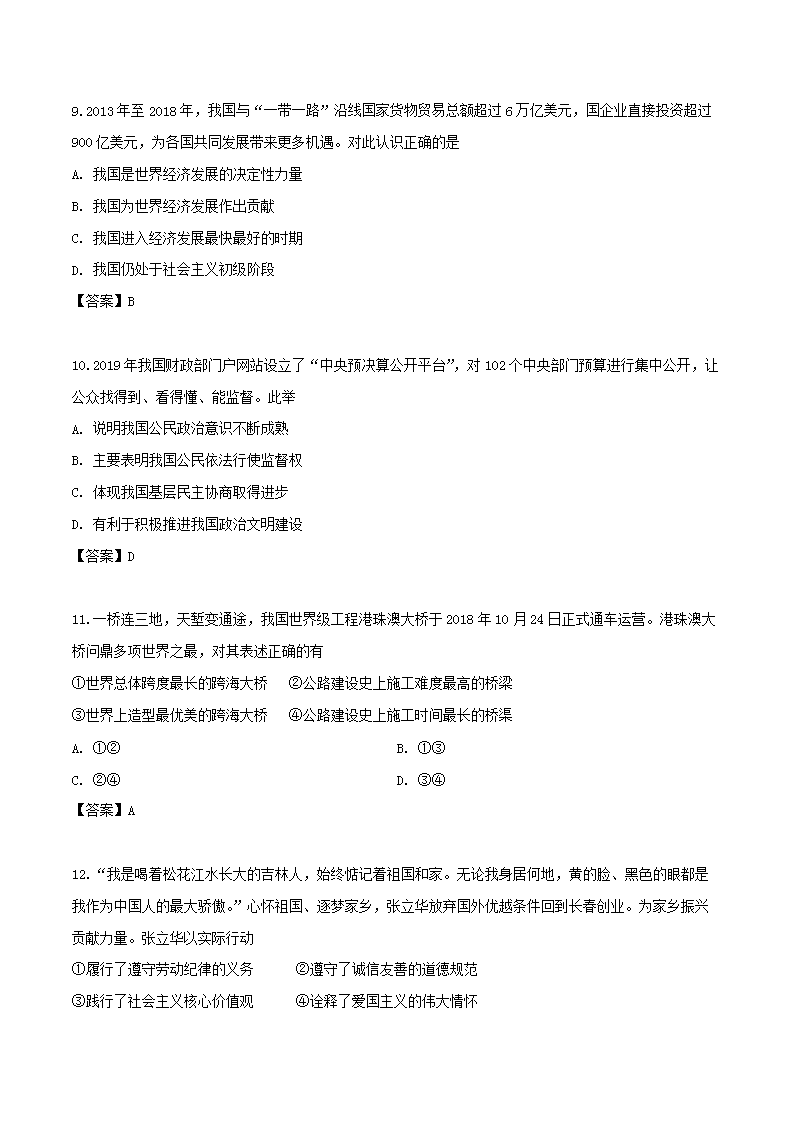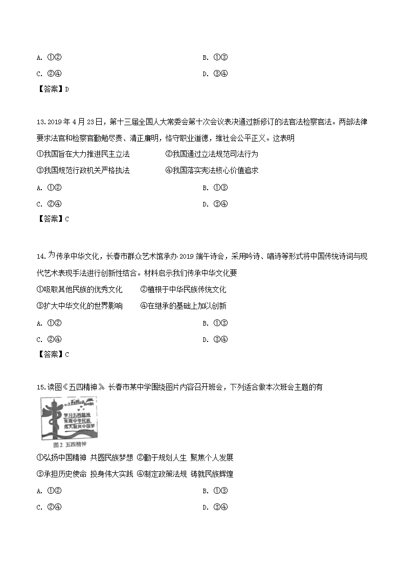 【文档名称】 2019年吉林长春中考政治真题及答案(Word版).doc