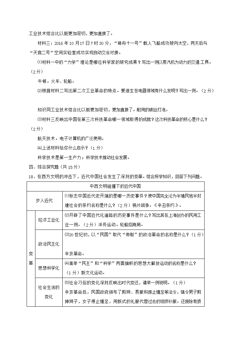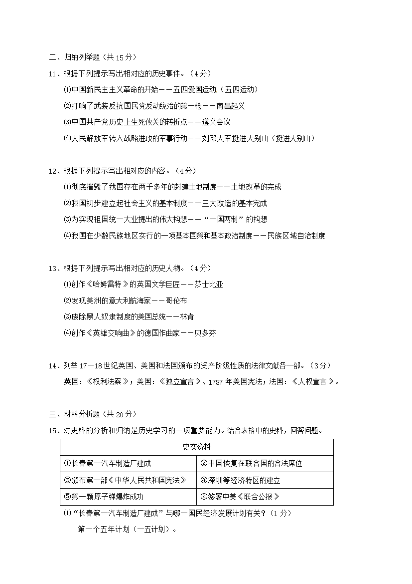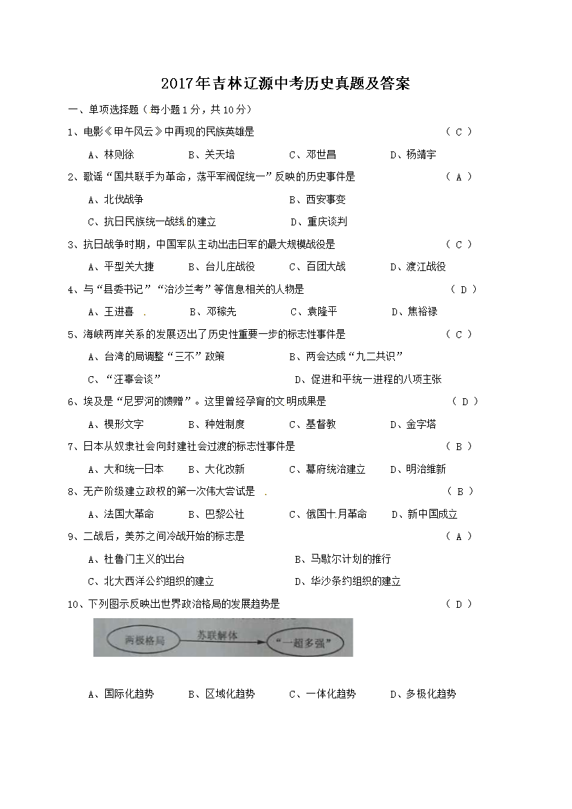 【文档名称】 2017年吉林辽源中考历史真题及答案(Word版).doc