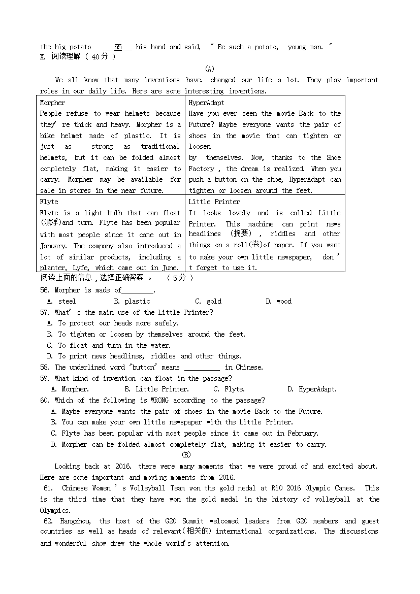 【文档预览】 无忧考网整理发布2017年吉林辽源中考英语真题及答案(Word版),前五页预览如下: