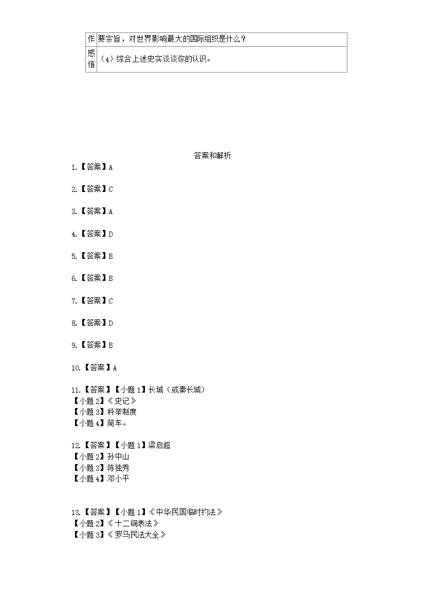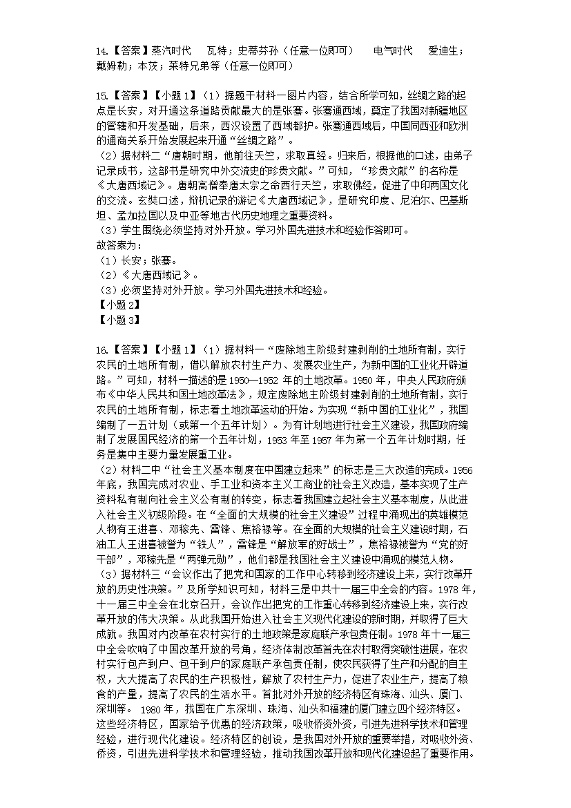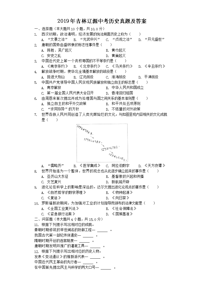 【文档名称】 2019年吉林辽源中考历史真题及答案(Word版).doc