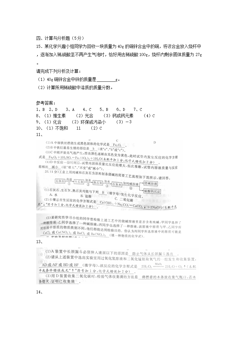 【文档名称】 2015年陕西省渭南中考化学真题及答案(Word版).doc