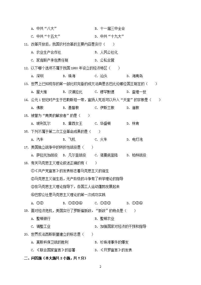 【文档预览】 无忧考网整理发布2019年黑龙江伊春市中考历史真题及答案(Word版),前五页预览如下: