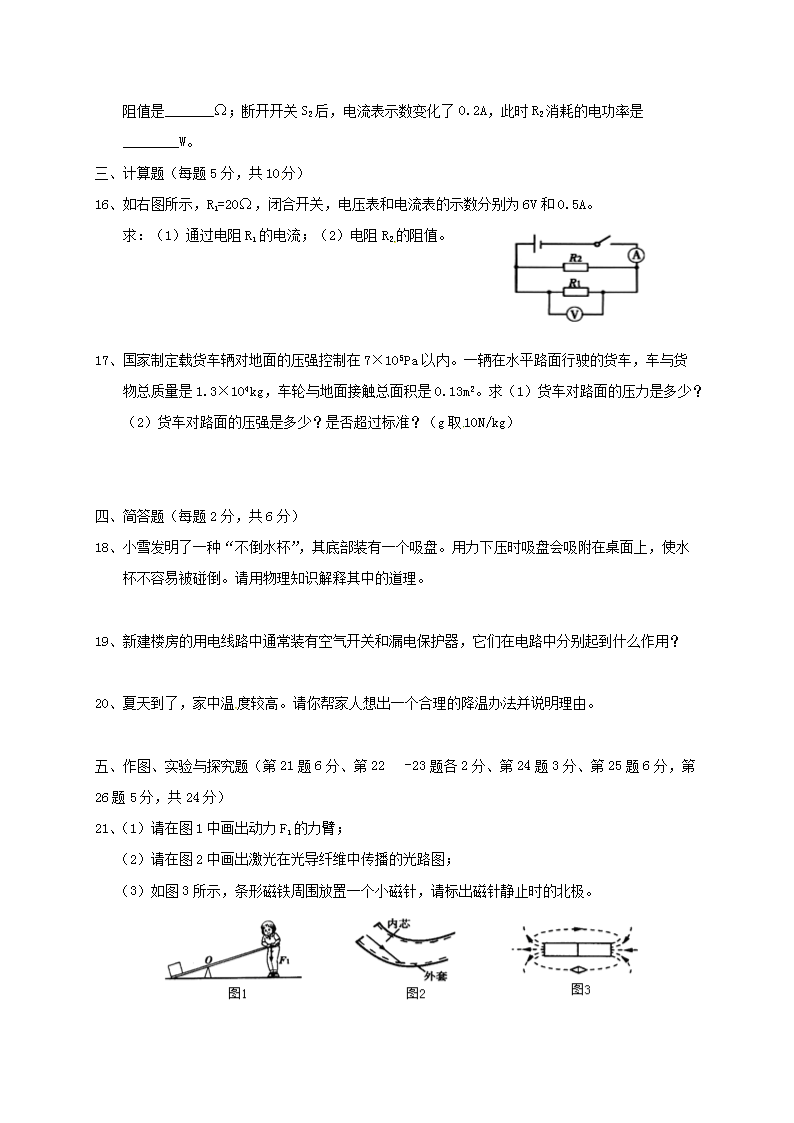 【文档名称】 2016年吉林四平中考物理真题及答案(Word版).doc
