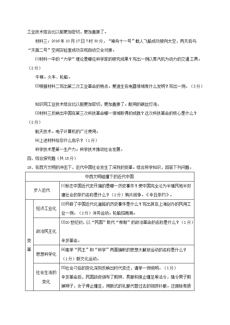 【文档名称】 2017年吉林四平中考历史真题及答案(Word版).doc