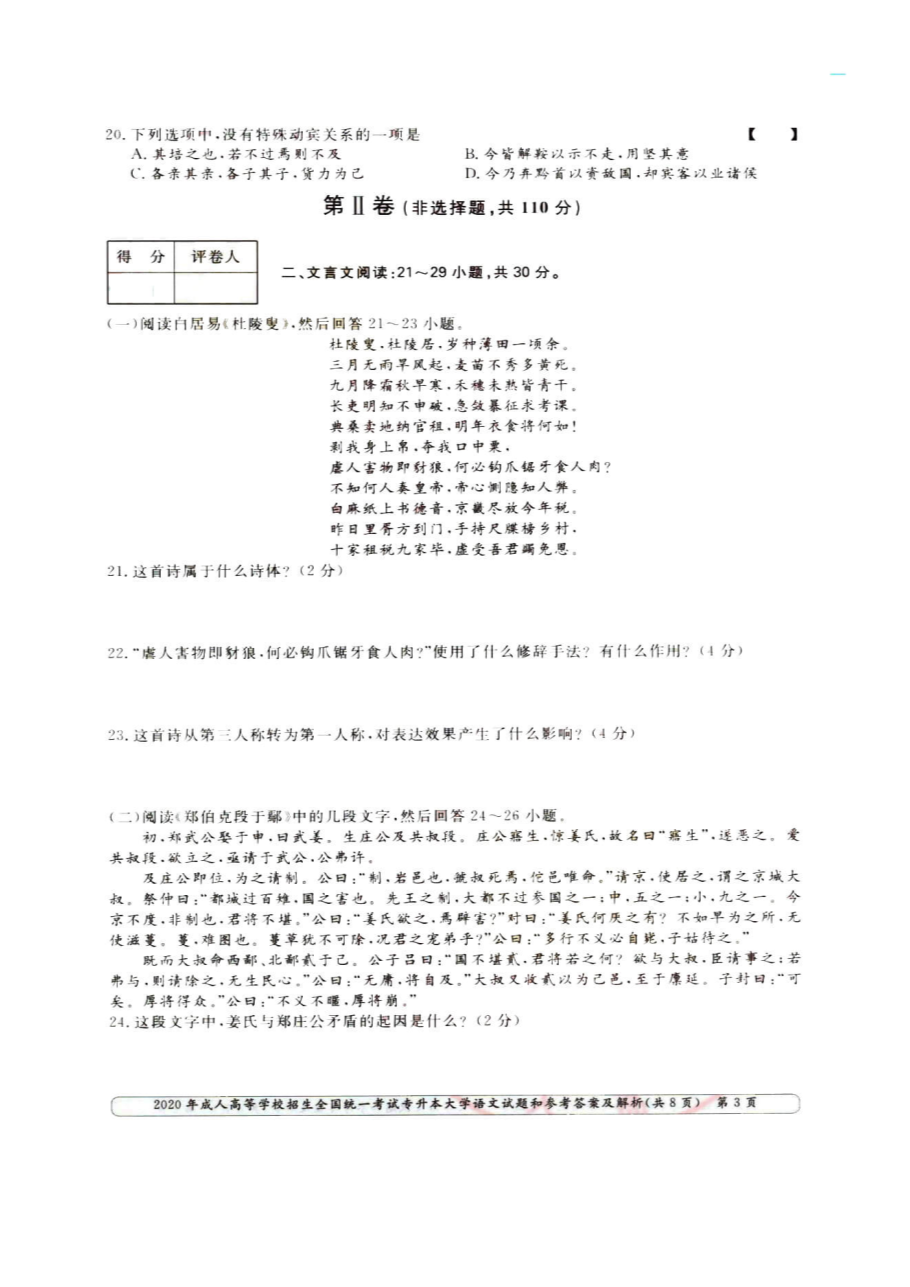 【文档名称】 2020年山西成人高考专升本大学语文真题及答案(图片版).doc