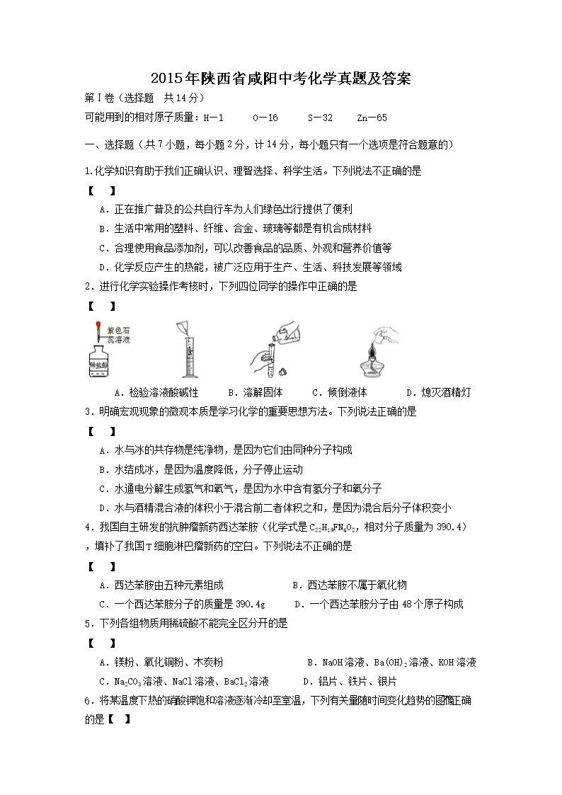 【文档预览】 无忧考网整理发布2015年陕西省咸阳中考化学真题及答案(Word版),前五页预览如下: