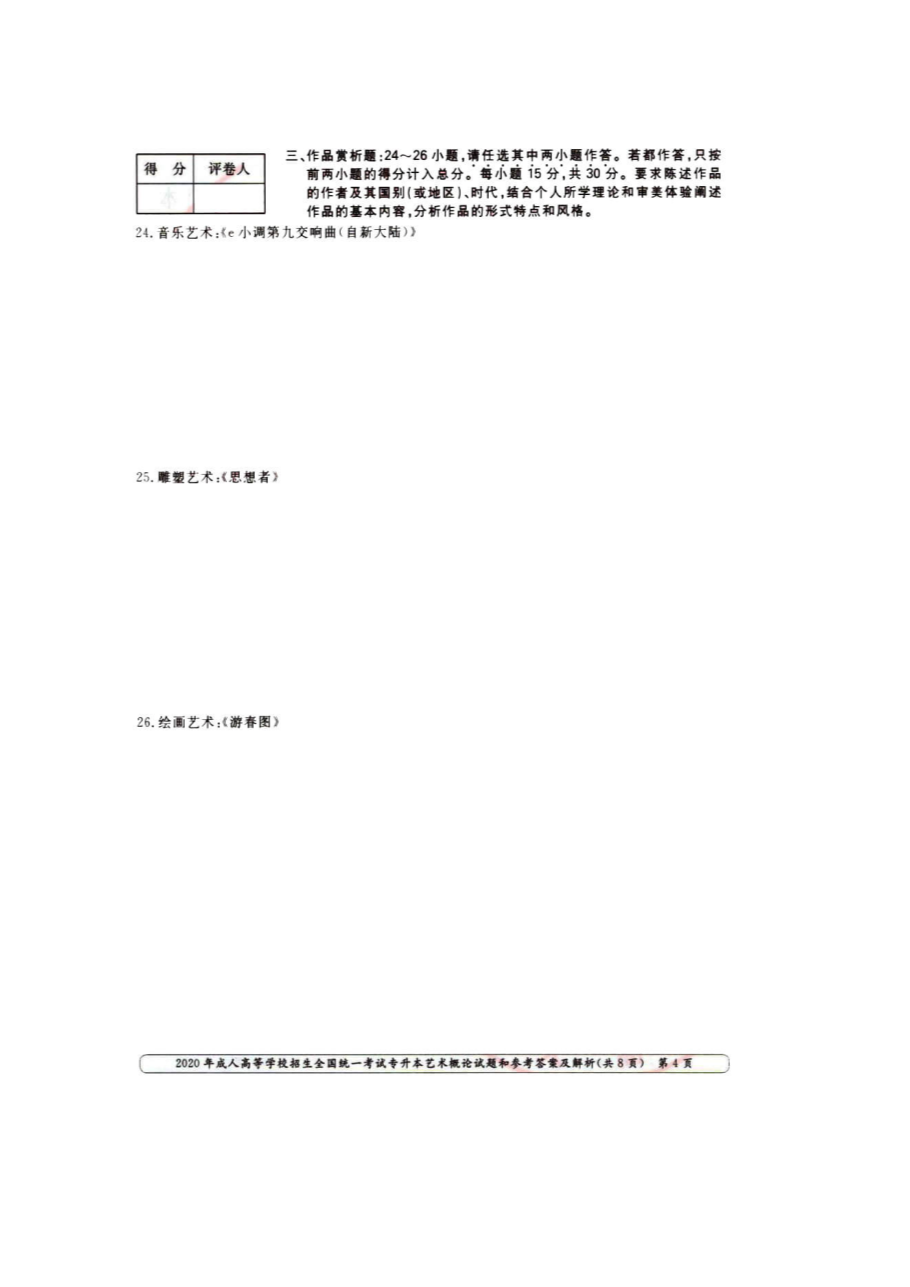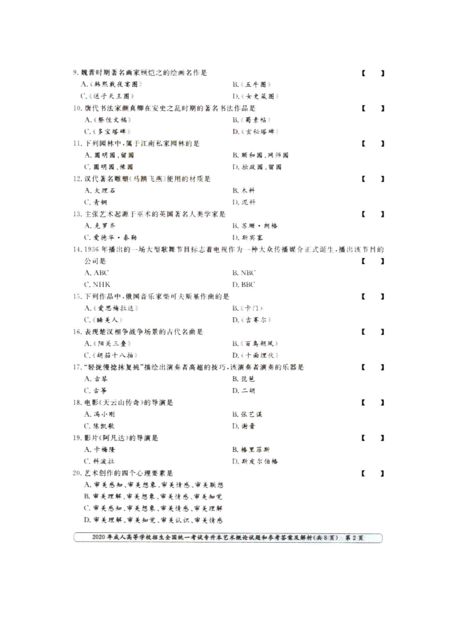 【文档名称】 2020年山西成人高考专升本艺术概论真题及答案(图片版).doc
