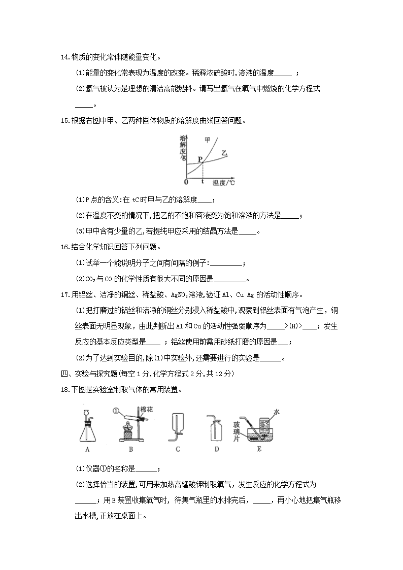 【文档名称】 2018年吉林四平中考化学真题及答案(Word版).doc