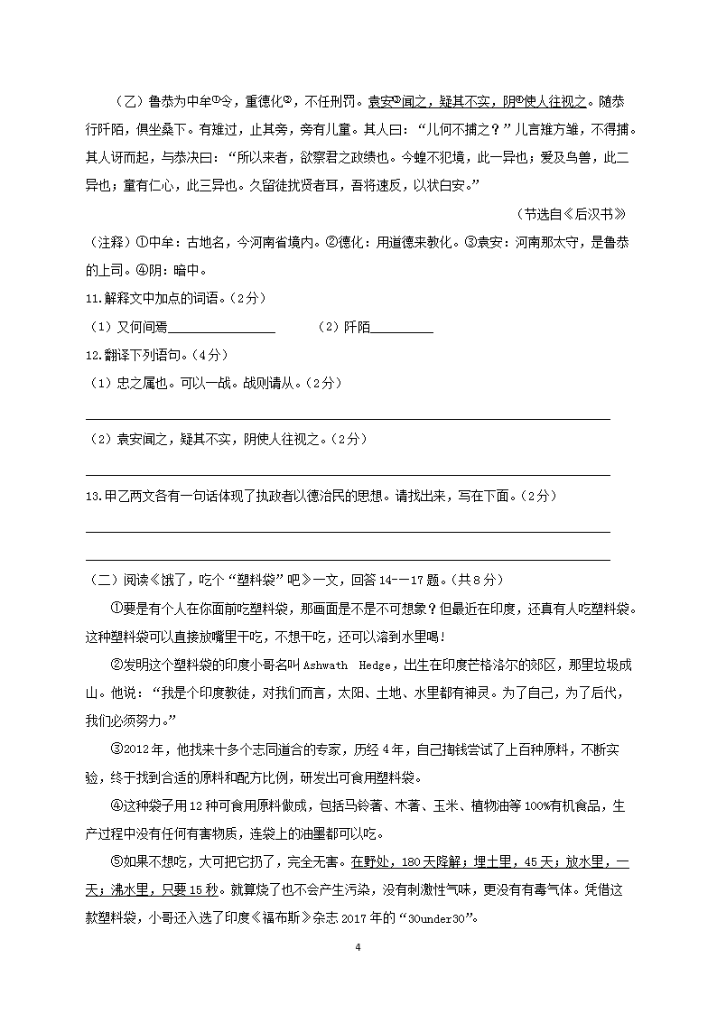 【文档预览】 无忧考网整理发布2019年黑龙江伊春市中考语文真题及答案(Word版),前五页预览如下: