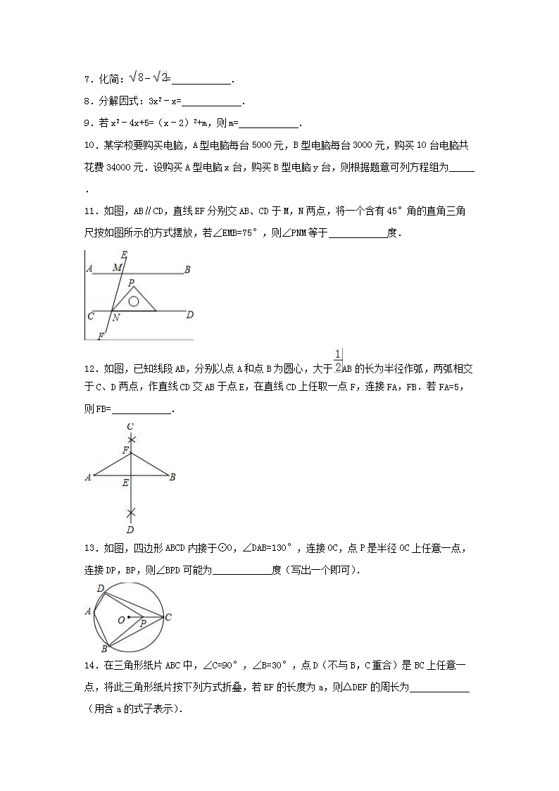 【文档名称】 2016年吉林松原中考数学真题及答案(Word版).doc