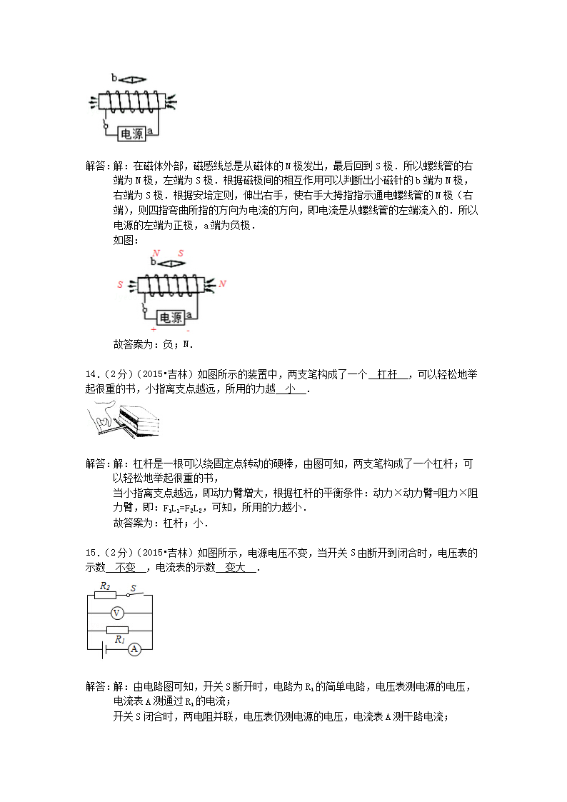 【文档名称】 2015年吉林延边中考物理真题及答案(Word版).doc
