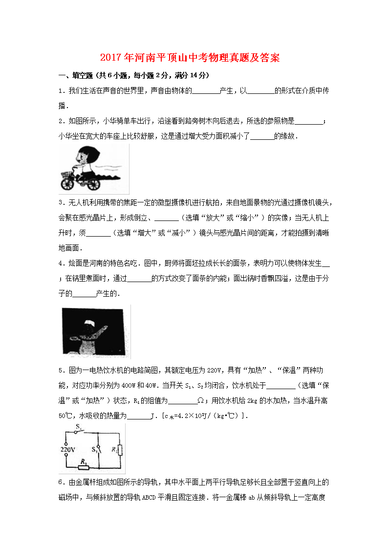 【文档预览】 无忧考网整理发布2017年河南平顶山中考物理真题及答案(Word版),前五页预览如下: