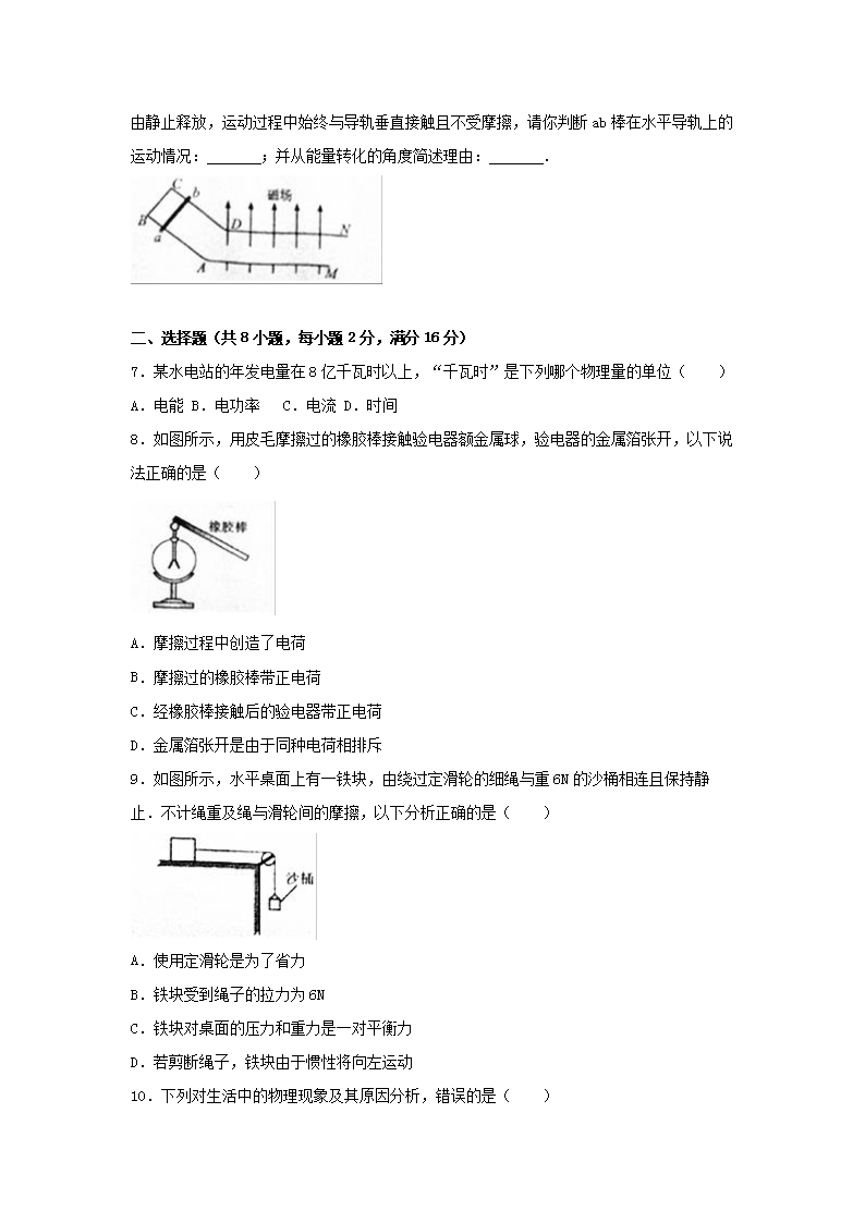 【文档名称】 2017年河南平顶山中考物理真题及答案(Word版).doc