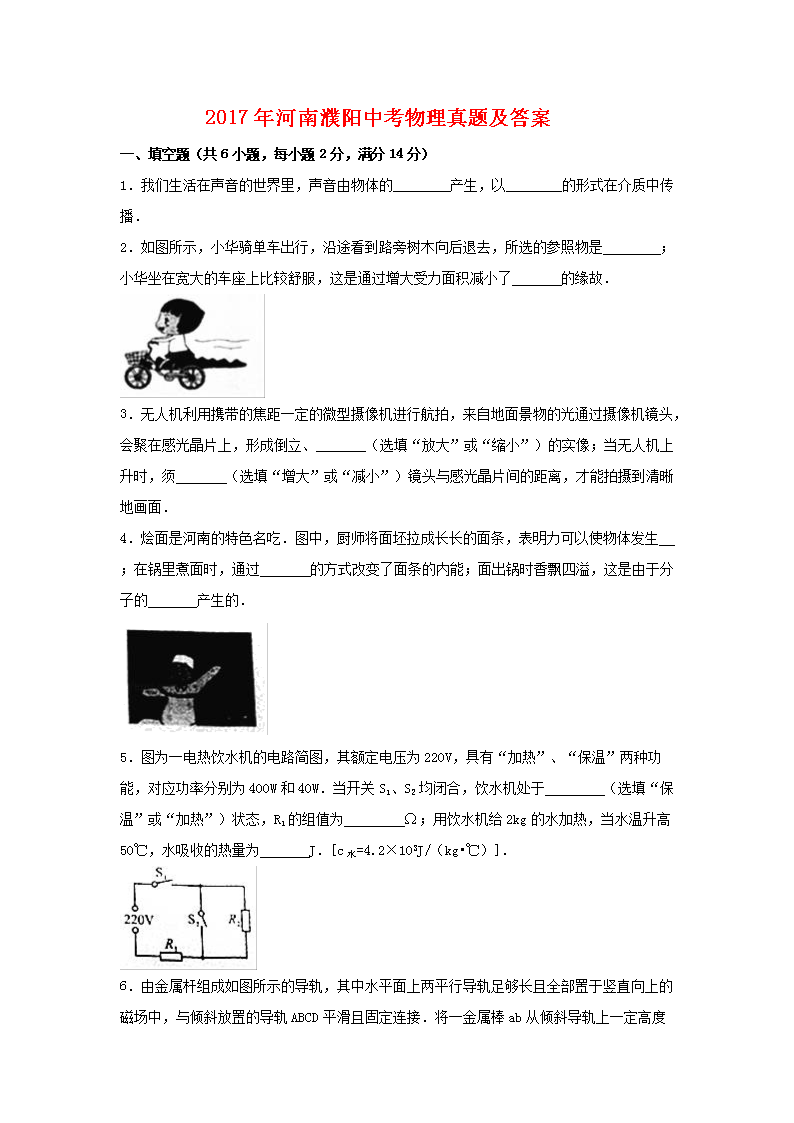 【文档预览】 无忧考网整理发布2017年河南濮阳中考物理真题及答案(Word版),前五页预览如下: