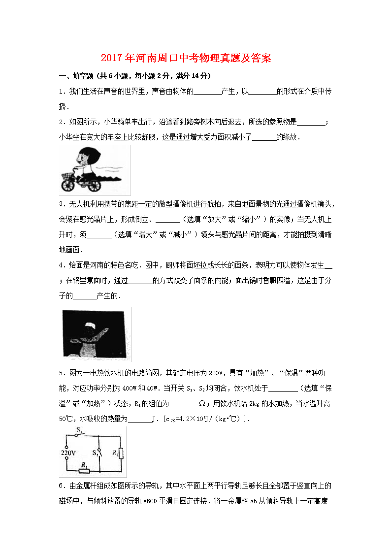 【文档名称】 2017年河南周口中考物理真题及答案(Word版).doc