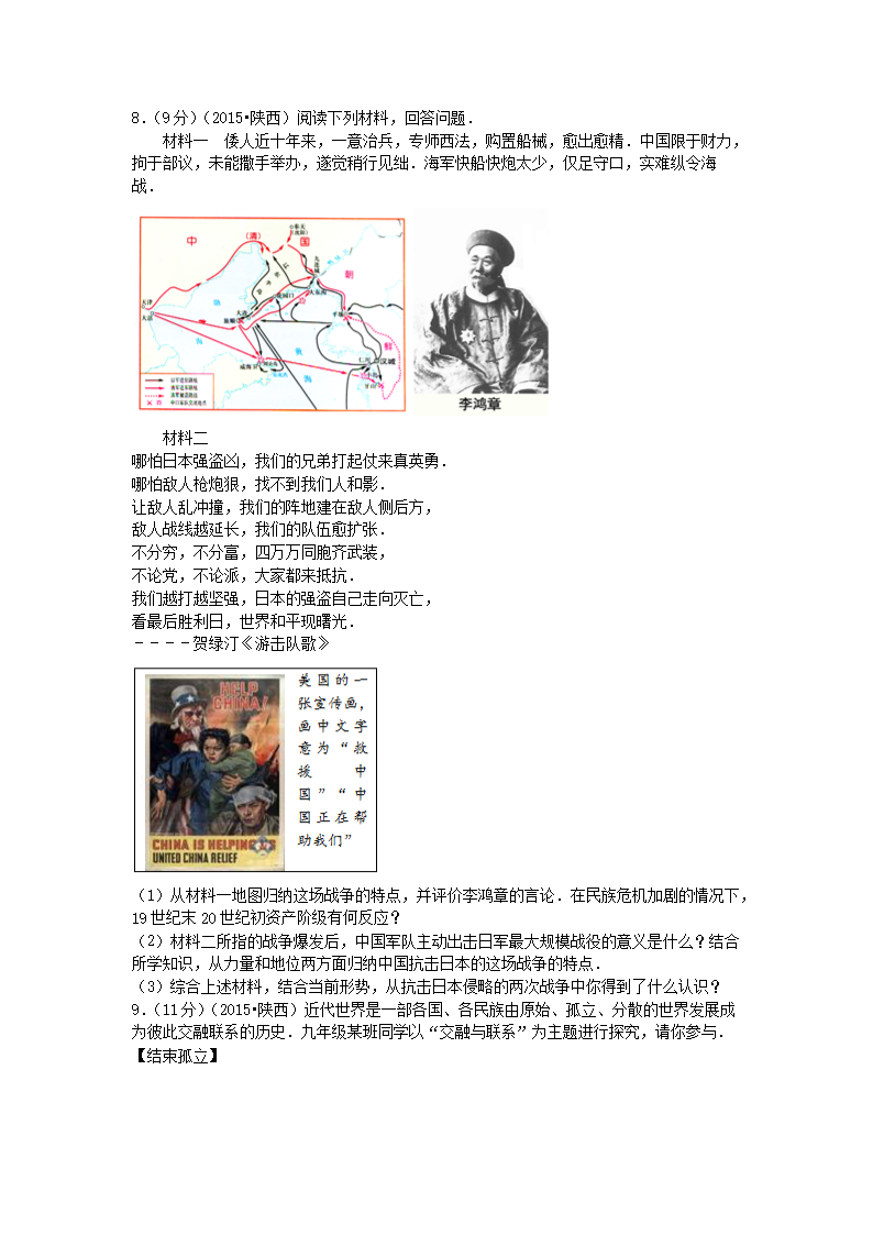 【文档名称】 2015年陕西省延安中考历史真题及答案(Word版).doc