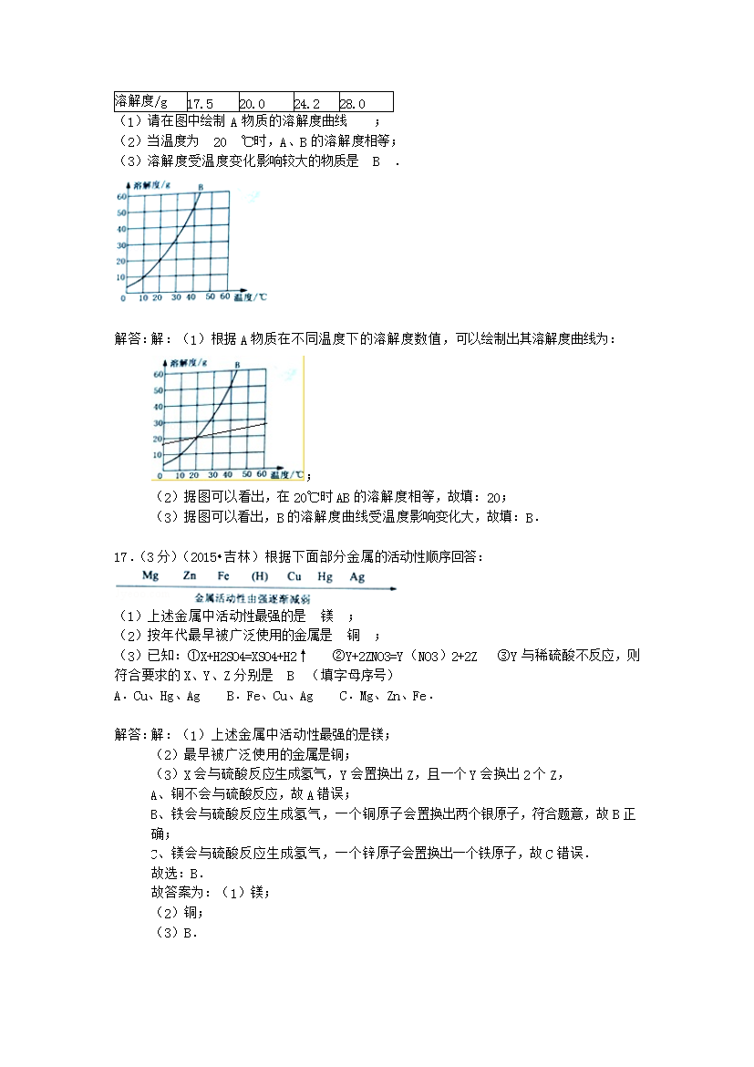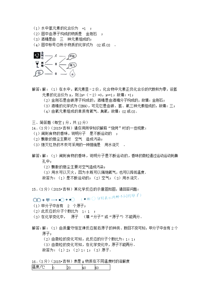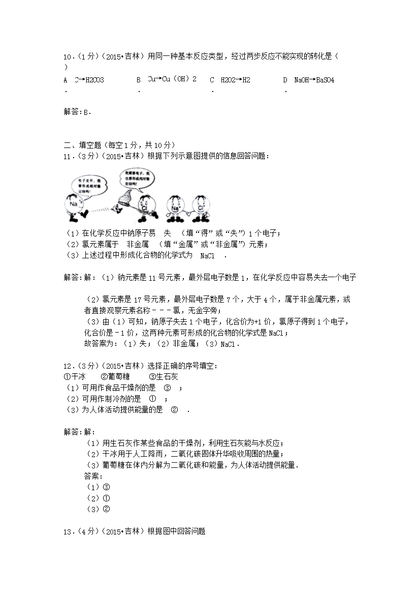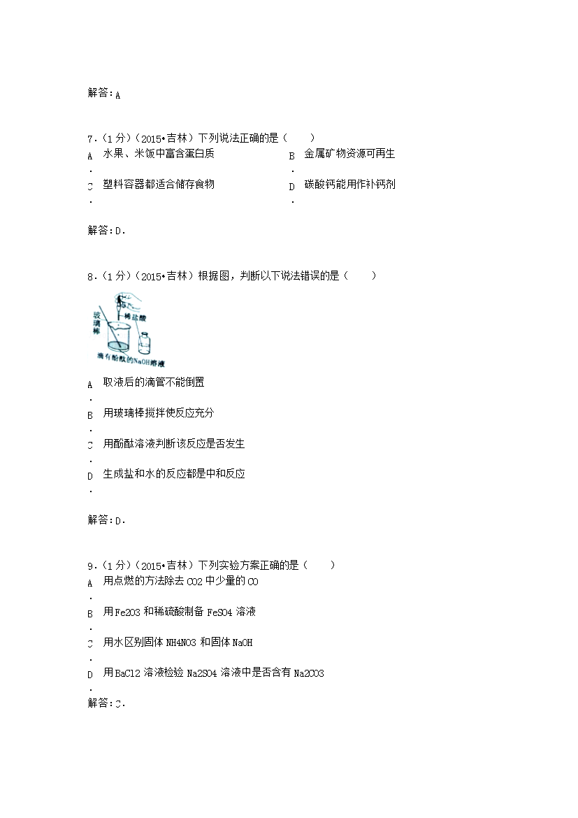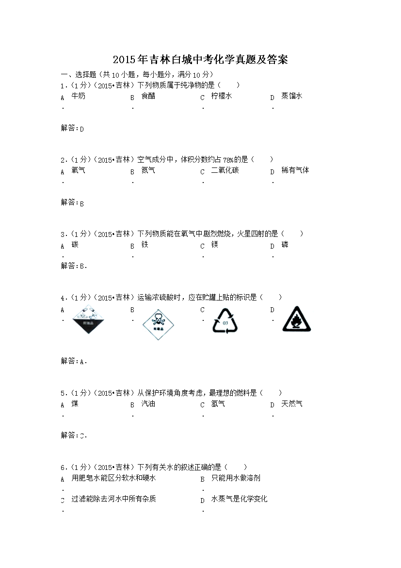 【文档名称】 2015年吉林白城中考化学真题及答案(Word版).doc