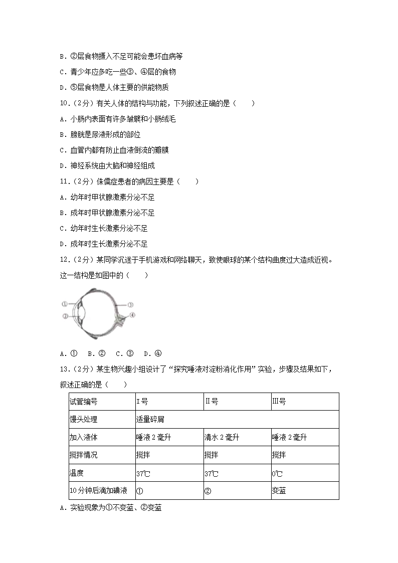 【文档名称】 2020年广东省揭阳市中考生物真题及答案(Word版).doc