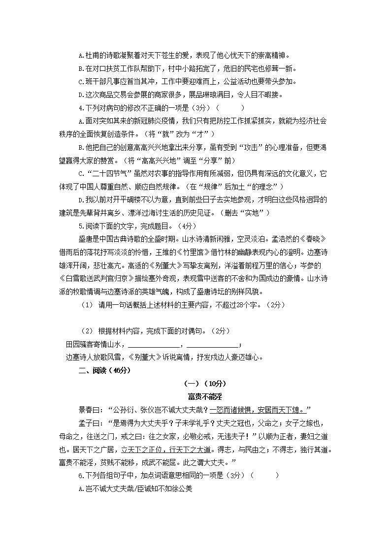 【文档名称】 2020年广东省揭阳市中考语文真题及答案(Word版).doc